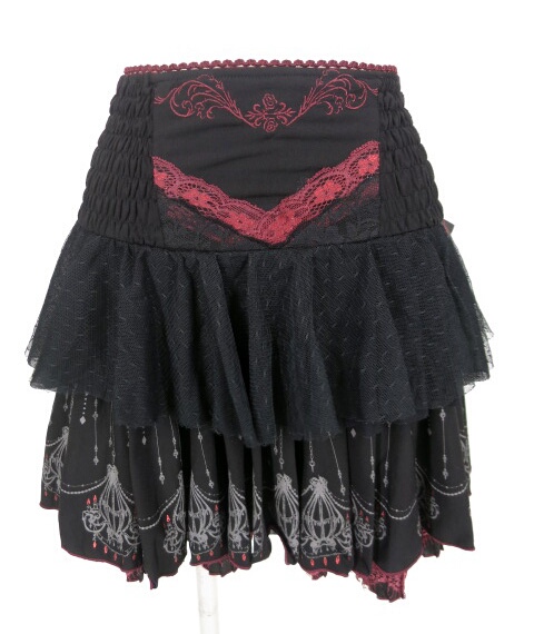 ローズ柄の総プリントが入ったロングスカートです。チャック部分で取り外し可能で、ショート丈にもなります。
