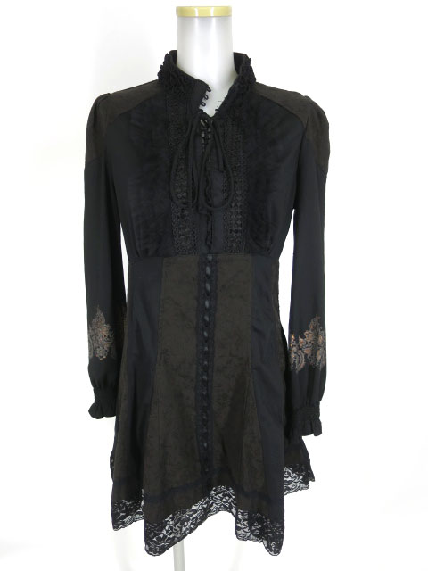 星刺繍入りの衿、肩が編み上げでアシンメトリーになった七分袖ワンピースです。