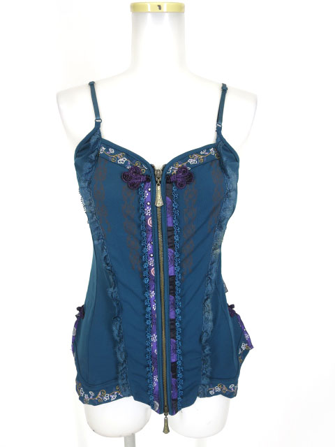青薔薇のボーダー柄のエレガントなハイウエストスカートです。腰の編み上げでサイズ調節可能です。