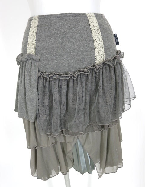 裾に3段シフォンフリルが付いたフィッシュテールスカートです。後ろに向かって長くなったデザインです。