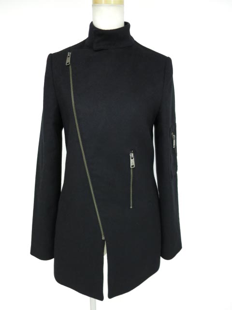 ■ウールライダースショートコート 黒 ライダース風デザインのショート丈コートです。 |