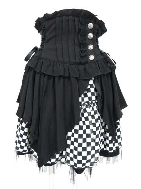■コルセット付きシフォンミニスカート 黒×オフ白 ソフトコルセットのセットになったスカートです。 |