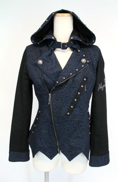 ■ストレッチツイルフードライダースジャケッ 黒×青 すっきりしたシルエットのフード付きライダース!フードは取り外しも可能!スタッズ使いもバッチリ!パンクロック好きさんにオススメです。 |