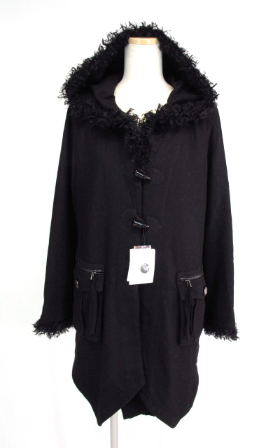■ドレープライナー付きボアフードヘムコート クロ 内側にドレープライナーのついたヘムコートです。ボアフードになっています。 |