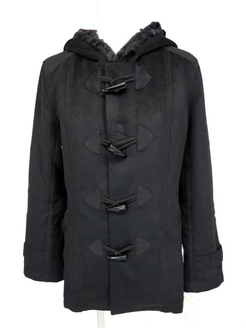 ■フードツートンダッフルショートコート 黒 新品 |
