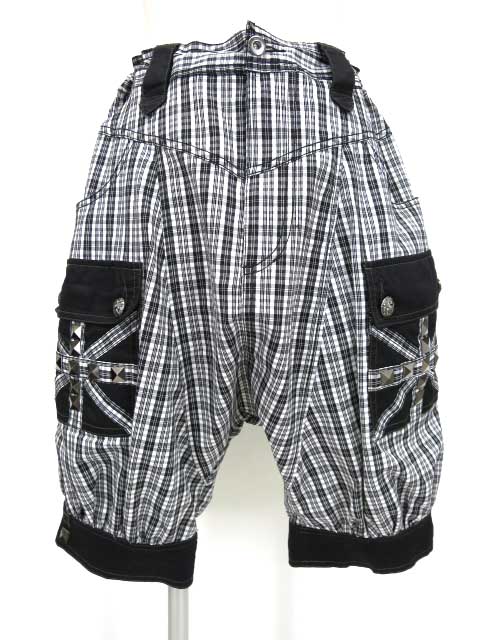 ■ユニオンジャックサルエルハーフパンツ 白×黒 ポケットがユニオンジャックの柄になったチェック柄デザインのハーフパンツです。 |