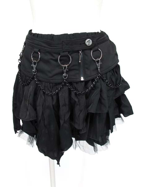 ■リングチェーン付きオーバーフレアースカート 黒 リングチェーン付きのオーバースカートとペチコートのセットになったデザインです。オーバースカートのチェーンとフリル部分は取り外しできます。 |
