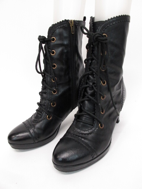 ■クララショートブーツ 黒 サイドジッパーの付いた編上げのショートブーツです。 |