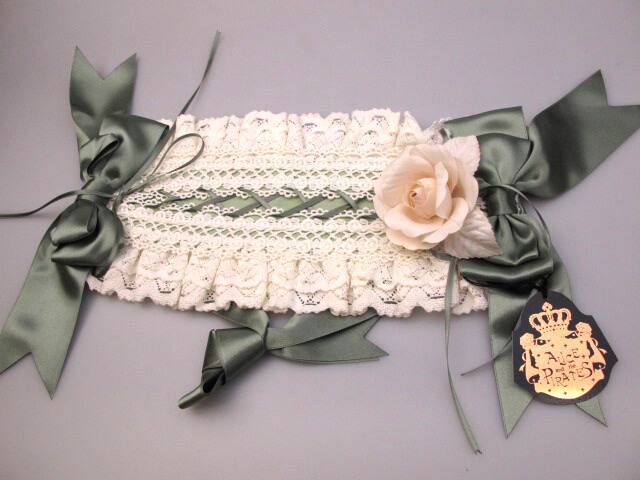 ■シルヴィアヘッドドレス 若草×生成り バラコサージュの付いた大きめデザインのゴージャスなヘッドドレスです。 |