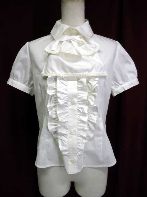 ■ジャボ付き半袖フリルブラウス オフ白 ジャボの付いた半袖のブラウスです。 |