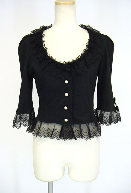■マリアレースカーディガン 黒 襟ぐりが大きく開いている五分袖レースカーディガンです。 |