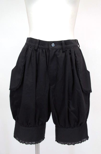 ■レース付きハーフパンツ 黒 ポケットや裾にレースラインを飾ったハーフパンツです。 |