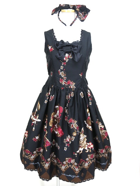 ■ワンダーラビットのマジカルトランプティーパーティー柄ジャンパースカート&カチューシャ セット 黒 |