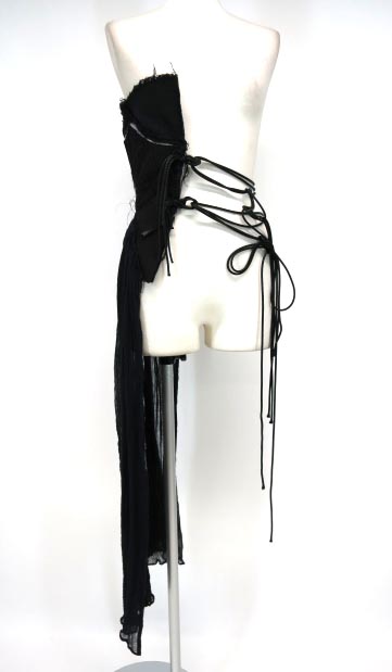 ■アシンメトリーガーゼオーバースカート 黒 プロテクターのようなカバーに楊柳ガーゼのスカートのようなドレープの付いたデザインです。 |