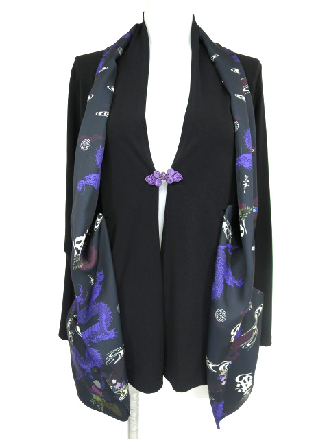 ■シフォンフリル付きプルオーバーカットソー 黒×白 切りっぱなしシフォンフリルの付いたストレッチカットソー生地のプルオーバーです。 |