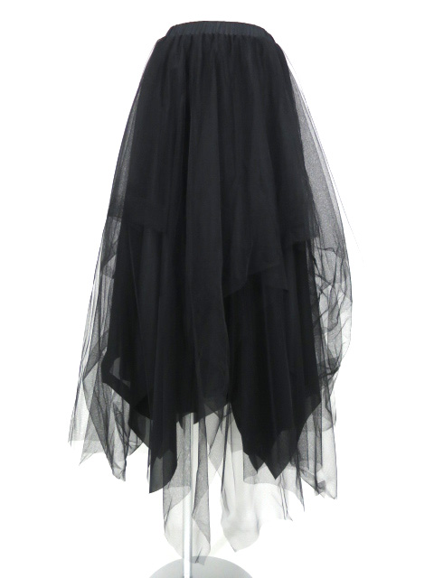 ■シフォン付きスカート 黒 RUNWAYで発表したスカート。両サイドがぱっくり開いていて、そこから垂れ下がるシフォンがエレガントかつエロティック。重ね着で楽しめます。 |