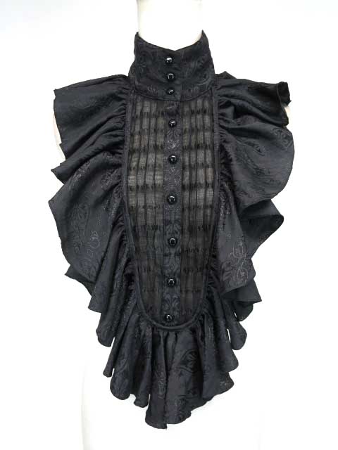 ■ジャガードフリル付け襟 黒 ジャガード生地の付け衿です。胸のピンタック部分はシースルーのシフォン生地です。 |