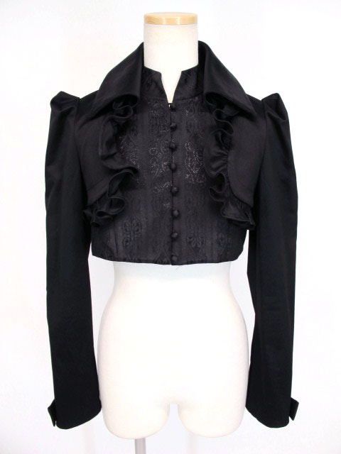 ■ジャガードレイヤードショートジャケット 黒 ジャガード生地を使ったレイヤードショートジャケットです。インナーとフリルジャケットは切り離してご利用いただけます。 |