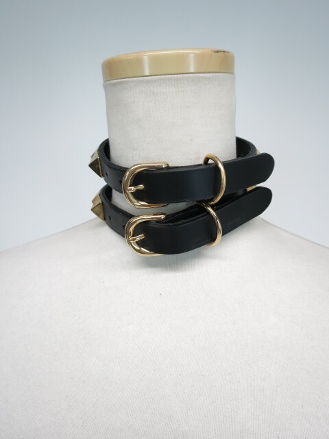 ■ピラミッドスタッズダブルレザーベルトチョーカー 黒×ゴールド パンクなピラミッドスタッズの付いたベルトチョーカーです。 |