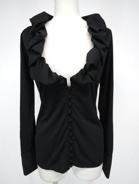 ■フリル衿ブラウス 黒 背中中央のギャザー部分はゴムが入っております。 |
