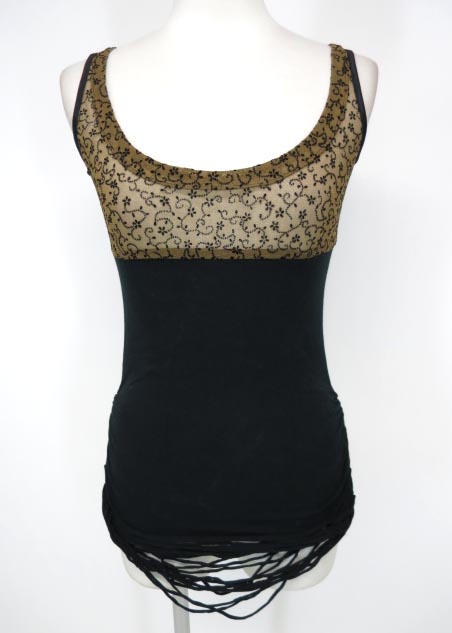 上部はフロッキープリントの入ったソフトチュール、下部はストレッチのきくカットソー生地です。裾にはフリンジの飾りがついています。