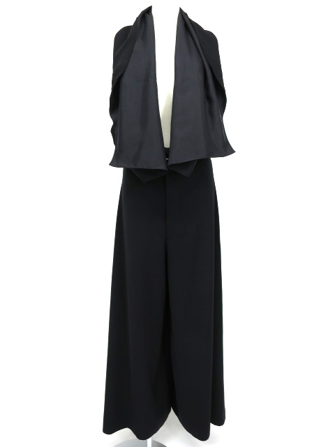 ■ホルター付きワイドパンツ 黒 ホルターネックのトップスの付いたデザインのワイドパンツです。ウエストはベルトで調節できます。 |