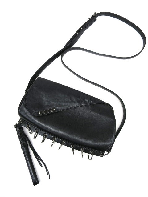 ■レザークラッチバッグ 黒 丸カンの付いたデザインのレザーバッグです。ストラップは2種類付いておりますので、クラッチバッグ、ショルダーバッグとしてお使いいただけます。 |