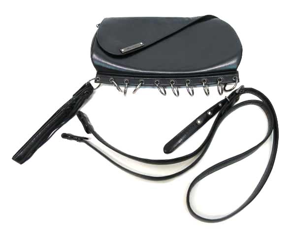■レザークラッチバッグ 黒 丸カンの付いたデザインのレザーバッグです。ストラップは2種類付いておりますので、クラッチバッグ、ショルダーバッグとしてお使いいただけます。 |