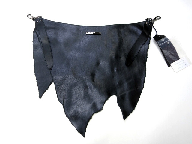 ■レザーフラップ 黒 パンツやベルトなどに取り付けできるフック付きのレザーフラップです。ギザギザの切りっぱなしにカットされた本革生地です。 |