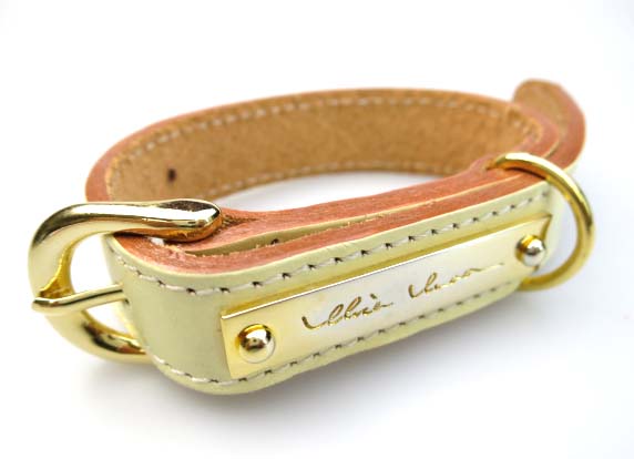 ■ロゴプレート付きレザーブレスレット アイボリー ゴールドのロゴプレートの付いた細身のレザーブレスレットです。 |
