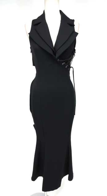 ■編み上げ付きノースリーブワンピース 黒 編み上げ紐のついたアシンメトリーデザインのノースリーブワンピースです。 |
