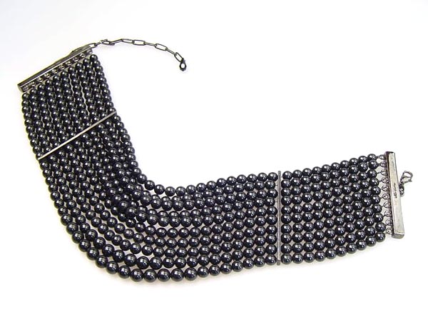■10連パールネックベルト 黒 10連につらなったゴージャスなパールを使ったネックベルトです。 |