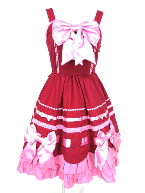■リボンミルフィーユジャンパースカート 赤×ピンク |