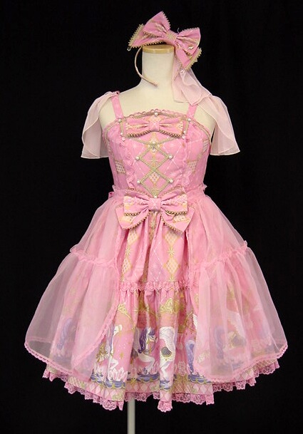 ■Crystal Dream Carnivalティアードジャンパースカート&カチューシャ ピンク Crystal Dream Carnivalシリーズのジャンパースカートです。オーガンジーの透け感あるオーバースカート付属。 |