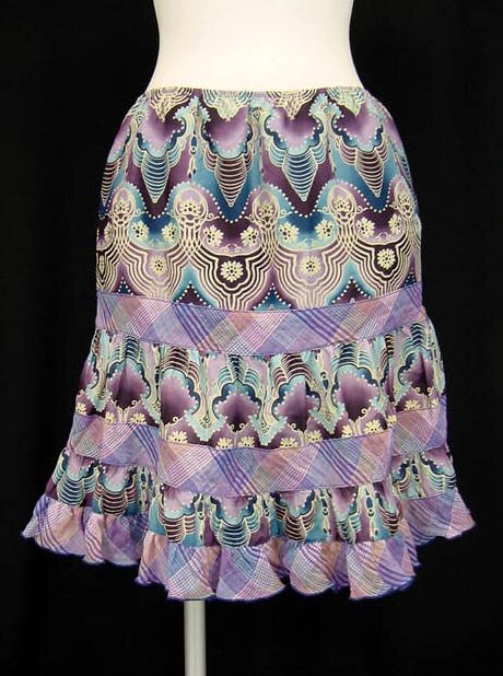 ■和柄スカート 紫 アナスイの和柄系総柄プリントを使ったスカートです。ウエスト部分ゴム入りで履きやすくなっています。 |
