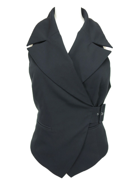 ■ウエストベルト付きベスト 黒 ウエストはベルトの付いたダブルデザインのベストです。背中側は編上げ付きで編み上げの内側はシャーリングになっています。 |