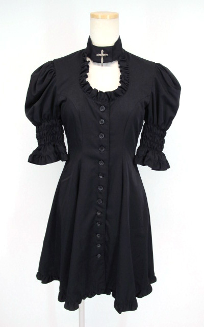 ■クロスチャーム付き袖シャーリングワンピース 黒 クロスチャーム付きデザインのシャーリングワンピースです。 |
