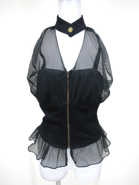 ■メッシュ付きホルターネックビスチェ 黒 メッシュ切り替えデザインのビスチェ型ホルターネックキャミソールです。 |
