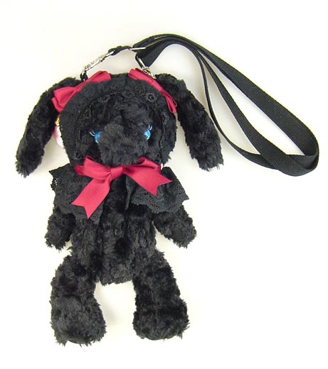 ■うさくみゃポシェット 黒×エンジ 人気のうさくみゃぬいぐるみバッグのショルダータイプです。バッグの口はフードを取った頭の上にあります。 |