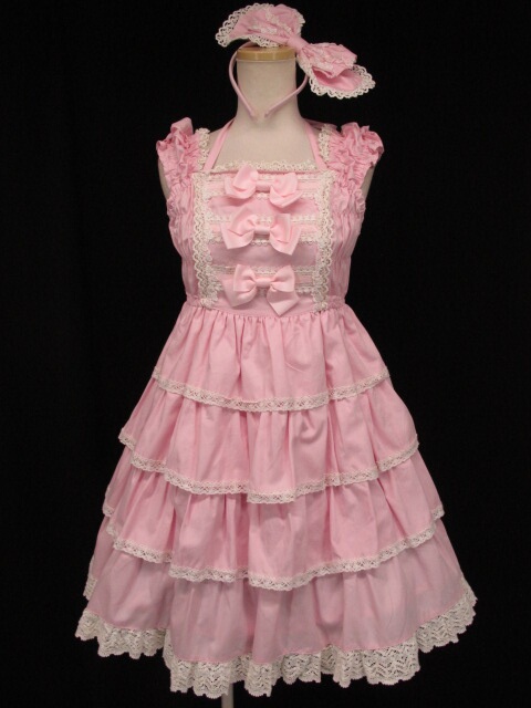 ■シャーリングティアードジャンパースカート&カチューシャセット ピンク |