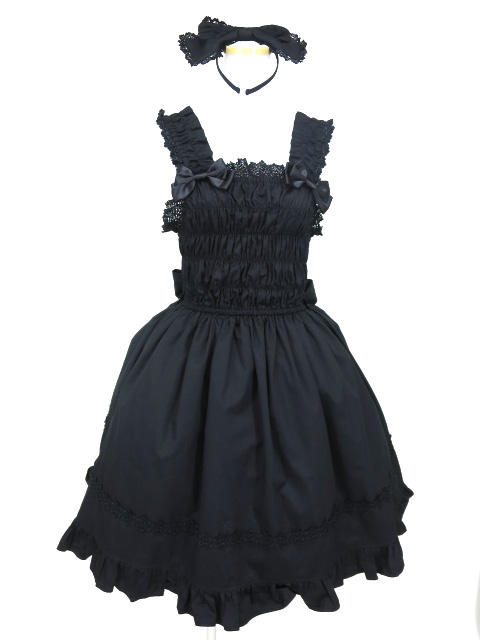 ■シャーリングプリンセスジャンパースカート&リボンカチューシャ 黒 ベイビーザスターズシャインブライトのJSKとカチューシャです。 |