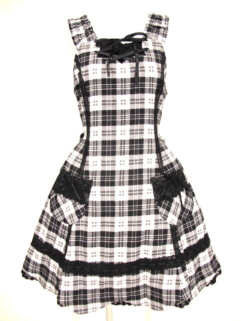 ■チェック柄スカラップジャンパースカート オフ白×黒 |