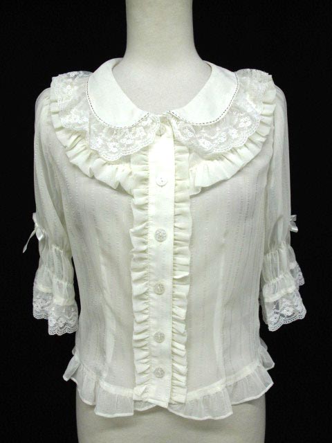 ■ラメ・ヨーリューブラウス 生成り ラメストライプの楊柳シフォン生地のブラウスです。 |