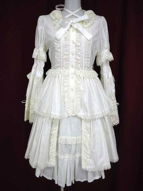 ■リボンとレースの2ピース オフ白 スカートとワンピースの2点セットです。お袖は取り外しが可能で、半袖にも長袖にもなります。 |