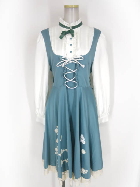■リリーレーヌジャンパースカート エンジ ウエストのレースベルトは取り外しができます。 |