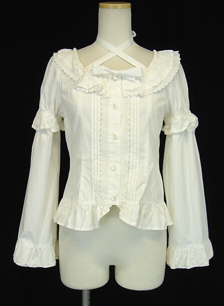 ■姫袖ブラウス オフ白 姫袖タイプのフリルブラウスです。姫袖はボタンでお取り外しが可能です。 |