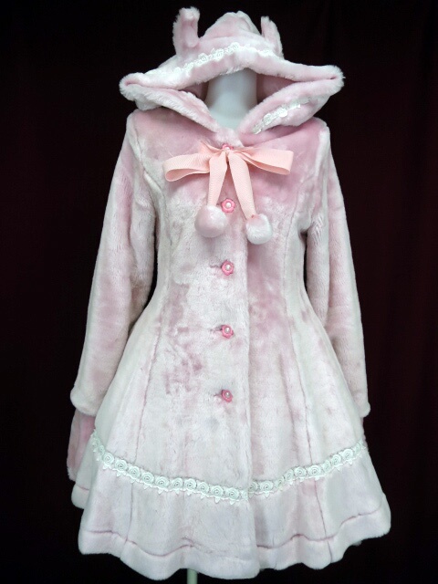 ■手袋付きファーコートワンピース ピンク ミトン手袋の付いたフェイクファーのコートワンピースです。 |
