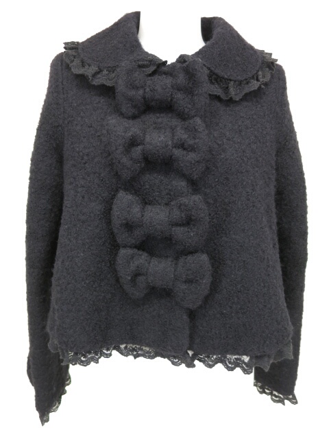 ■Teddy Ribbon ショートコート 黒 リボンのたくさんついた、もこもこのウール生地のショートコートです。 |