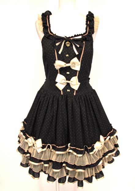 ■Twinkle girlジャンパースカート 黒×ゴールド ゴールドのドット柄デザインのJSKです。 |