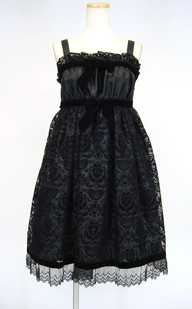 ■Victorian Secret KEYベビードールジャンパースカート 黒 フロッキープリントデザインのベビードールジャンパースカートです。 |